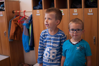 Dnes poprvé ve "velké" školce. V přijímacím řízení jsme se v ani jedné ze tří školek nedostali. Pak se nám poštěstilo a přijali nás v té naší vysněné. S krásnou zahradou, s panem učitelem, velkým popelářským autem a z domu co by kamenem dohodil. Jako bonus tam Šíma už několik dětí zná, takže se tam opravdu těšil. A první den proběhl nad očekávání. Dokonce i krupicová kaše, kterou doma nejí, byla prý "skvělá" :)
